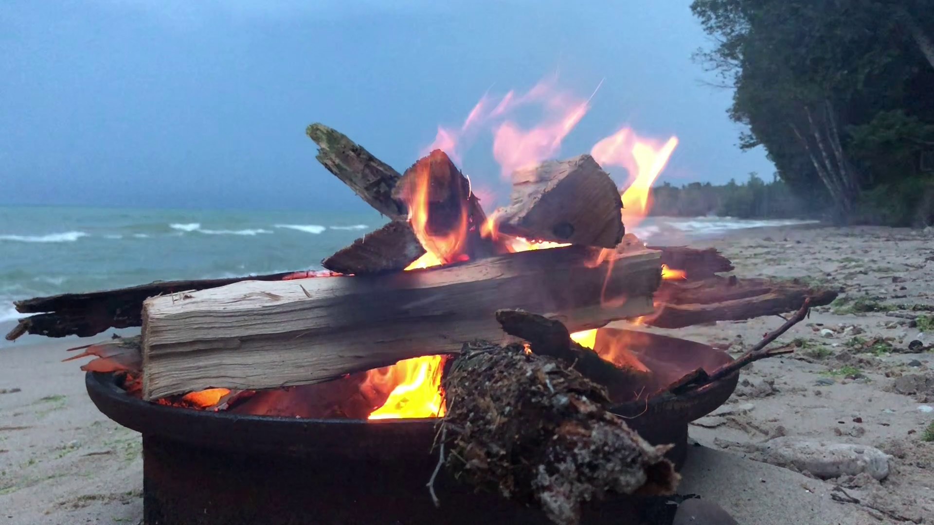 Here, the peace and coziness of the fire is contrasted against the anger of the storm and sea that would, later that evening, fling a chair into the embers.